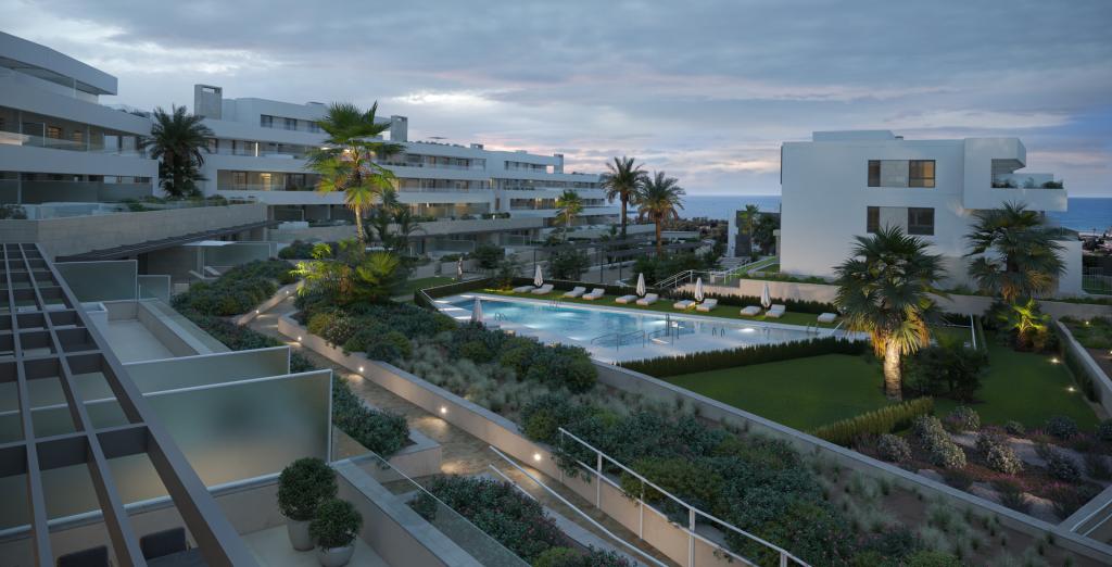 Aceste apartamente cu două dormitoare și grădină privată la parter fac parte dintr-un nou complex rezidențial format din 105 apartamente cu două, trei și patru dormitoare, situate pe una dintre cele mai înalte parcele din vestul Estepona. Acest complex garantează vedere la mare din 90% din unitățile care îl compun.