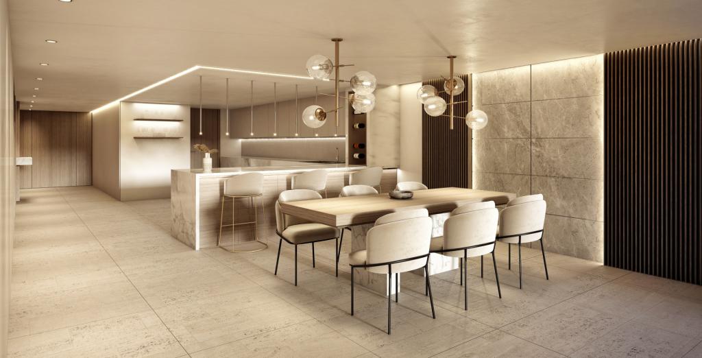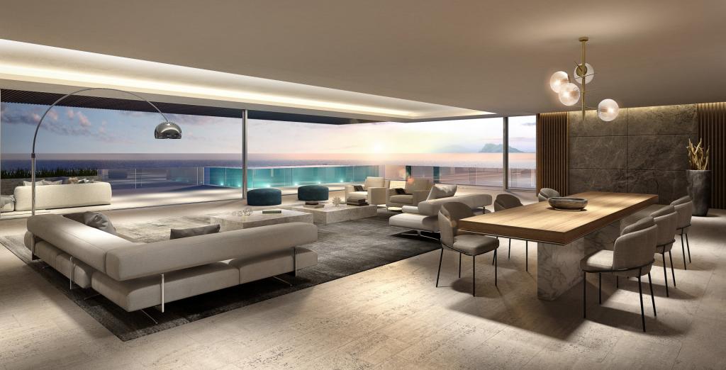 Pasiti in zona de locuit spatioasa, decorata cu mobilier elegant si inundata de lumina naturala care patrunde prin ferestrele de la podea pana la tavan, invitandu-va sa va relaxati cu stil. Fluxul perfect intre zona de locuit, zona de luat masa si bucatarie creeaza o atmosfera primitoare ideala pentru a primi oaspeti sau pur si simplu pentru a va bucura de momente de relaxare.
