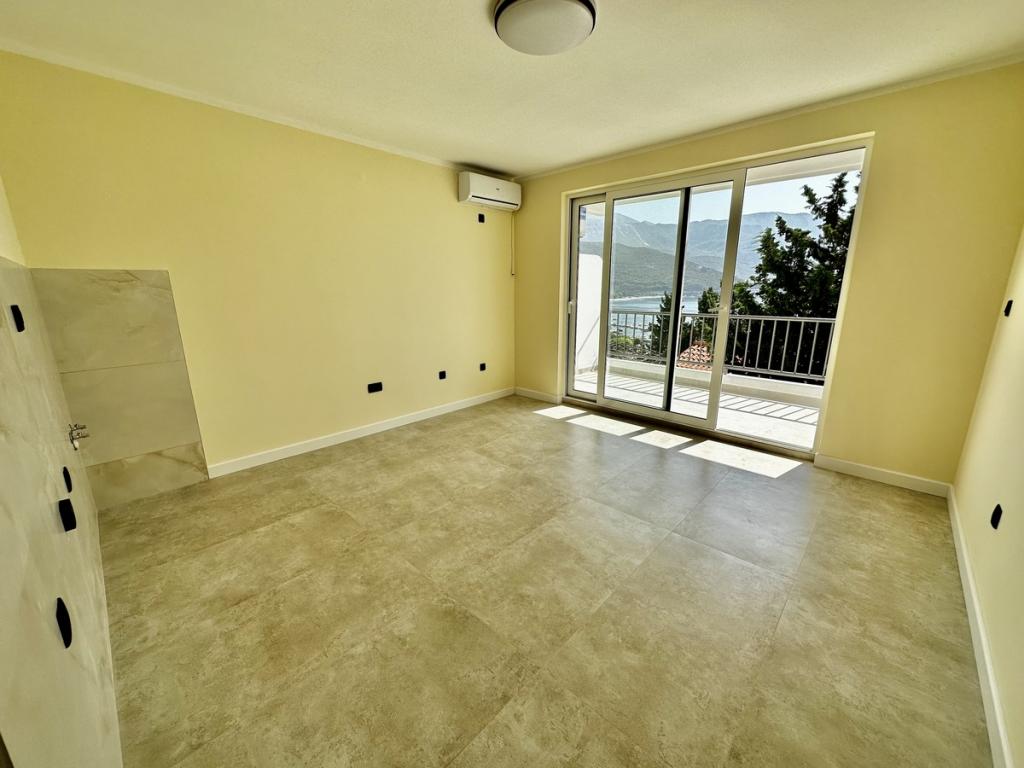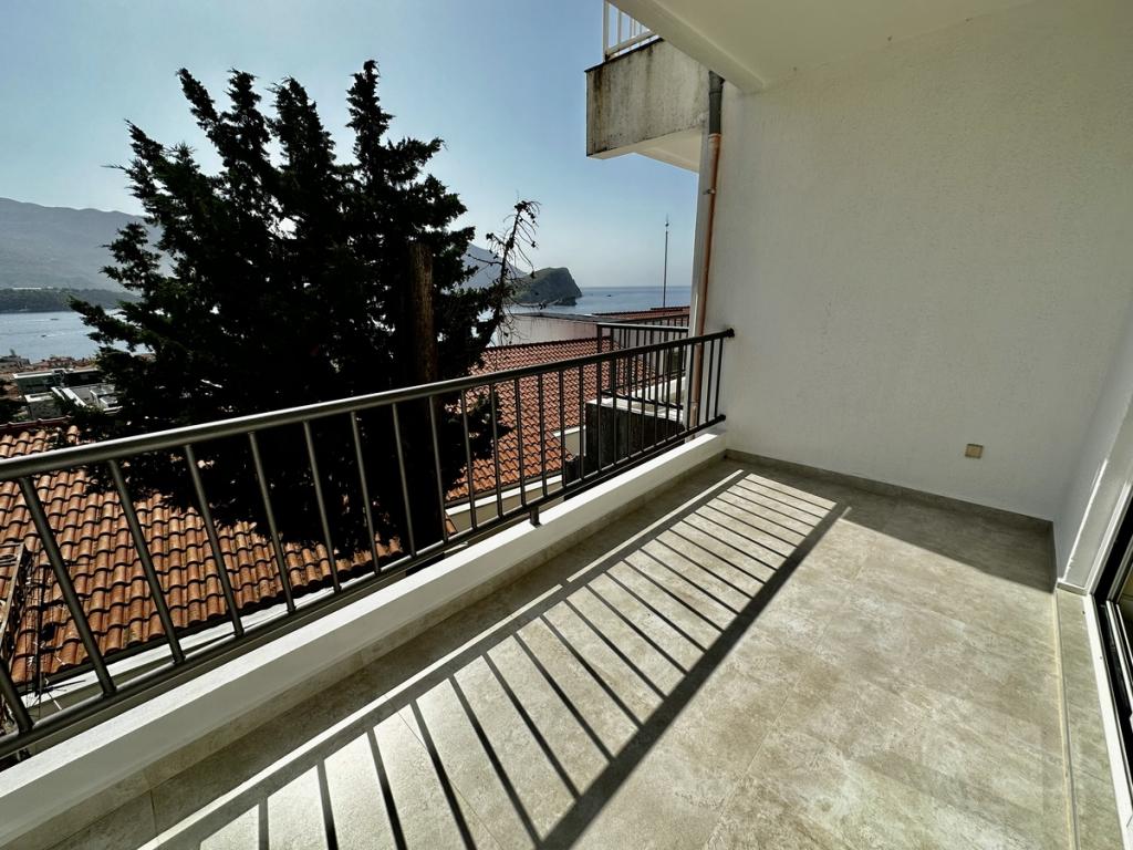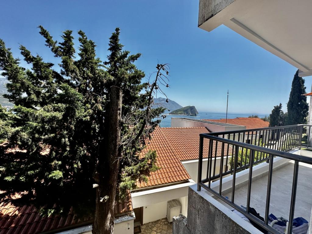 Din living și de pe terasă se pot admira priveliști magnifice către mare, portul Budva și insula din apropiere.