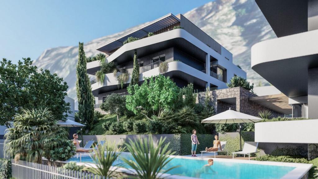 Apartamentul se află în Kotor, la primul etaj al clădirii cu trei etaje. Dispune de un living open space cu bucătărie și zonă de luat masa, 2 dormitoare, 2 băi și o terasă cu spațiu verde. Acesta face parte dintr-un complex rezidențial ascuns printre palmieri, pini și oleandri, la 300 de metri de coastă, care vă va oferi liniște, o priveliște asupra golfului și un loc de locuit. Apartamentele spațioase, garajul, piscina în aer liber și locul de joacă pentru copii sunt doar câteva dintre avantajele sale. Acest complex rezidențial oferă apartamente de diferite structuri, de la 27 m2 la 250 m2. Proiectul va fi finalizat în vara anului 2024.