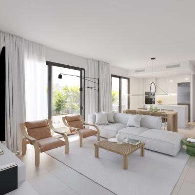 Terasele perfecte pentru a te bucura de arhitectura sa și de designul contemporan permit teraselor să se bucure la maximum de lumina mediteraneană și de cele mai bune vederi, amestecându-se cu mediul înconjurător și respectând natura care îl înconjoară. Teraselor de la penthouse-uri sunt spațioase și cu vederi impresionante. La fel și apartamentele de la parter au o grădină privată.