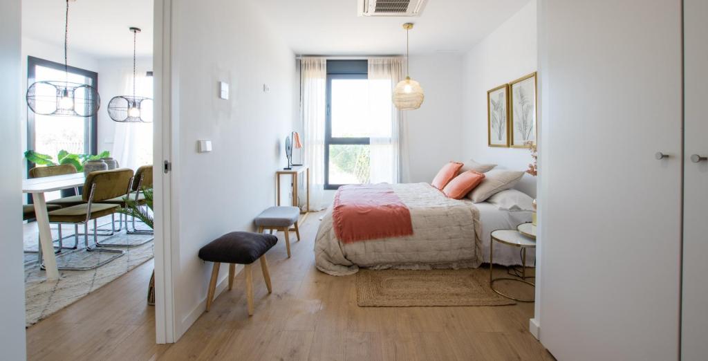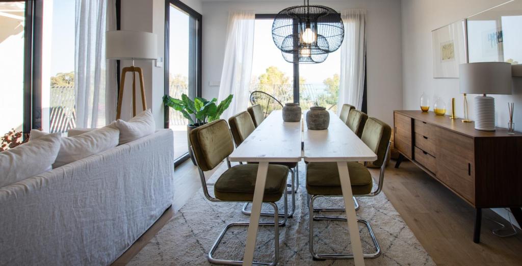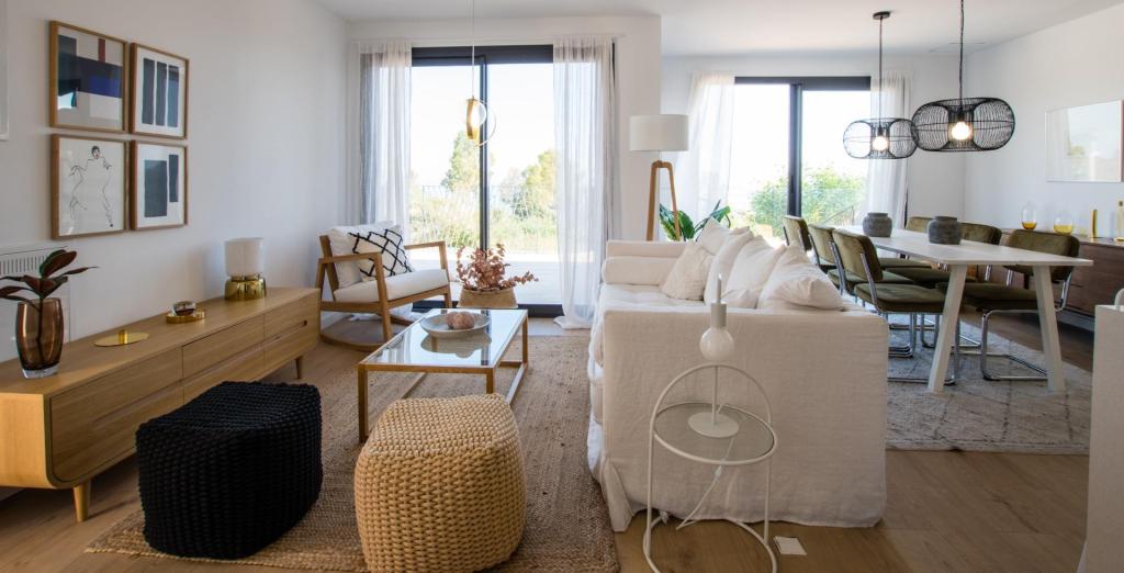 Proprietățile de la parter au 1 dormitor și 1 baie, cu terase și grădini private. Apartamentele cu 1 și 2 dormitoare și 1 și 2 băi au terase mari, cu o zonă acoperită și una deschisă. Penthouse-urile cu 3 dormitoare și 2 băi au terase și solarium-uri private. Toate proprietățile au loc de parcare privat.