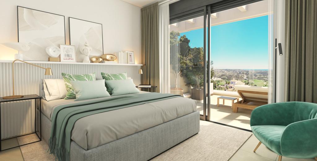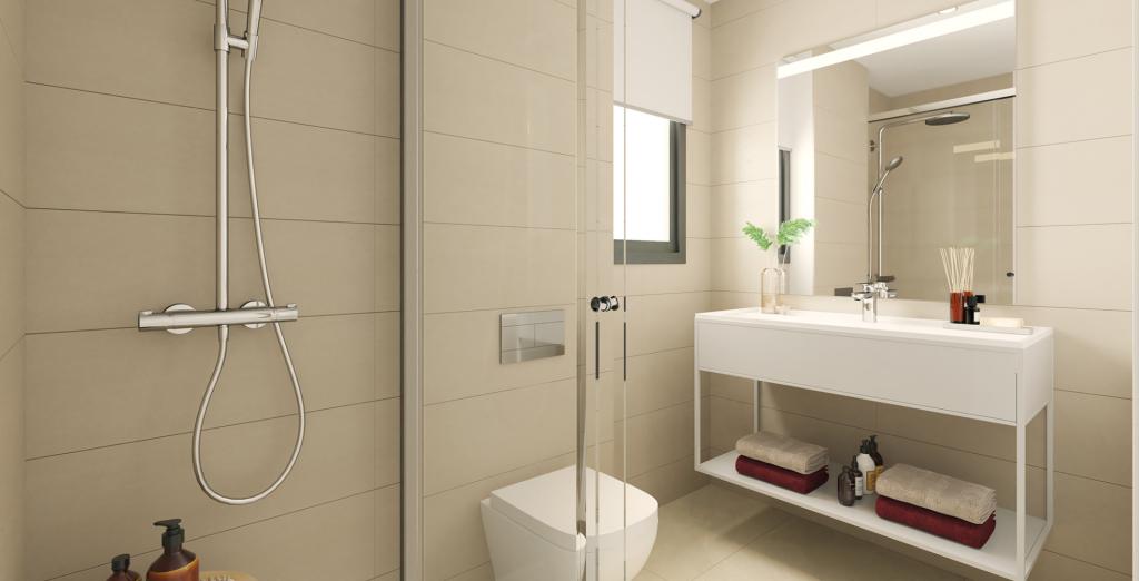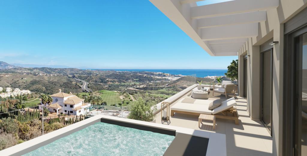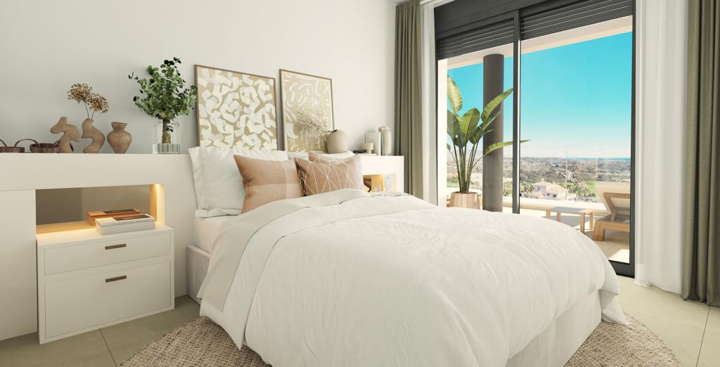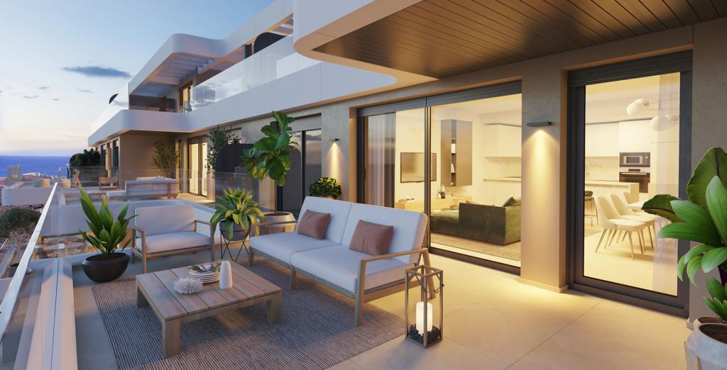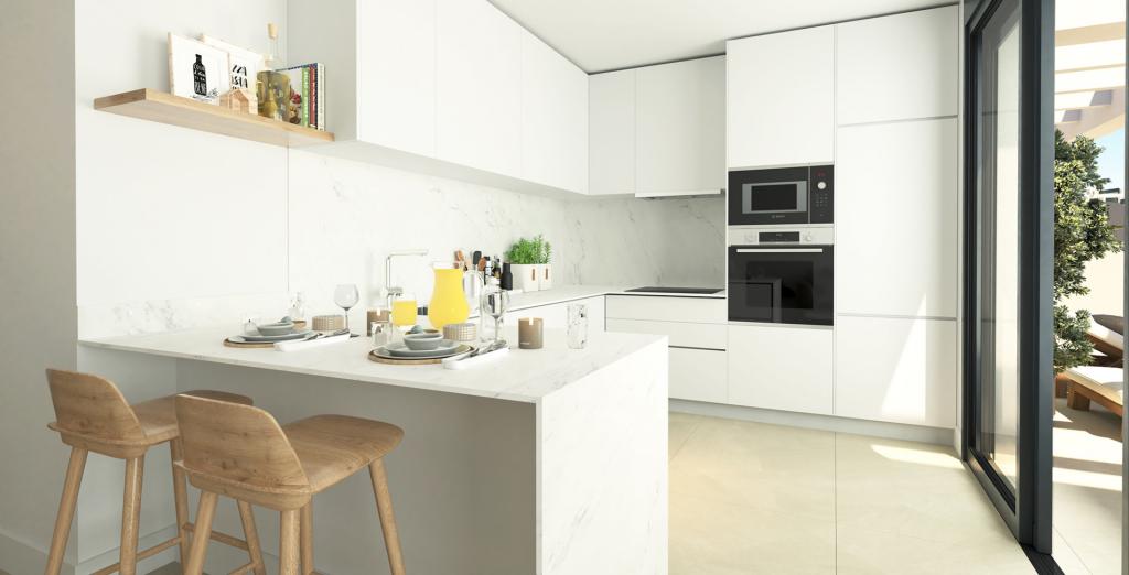• Penthouse-urile cu două camere oferă și mai mult spațiu în aer liber pentru a vă bucura de climă, cu propriul solarium pentru a profita la maximum de vederi. Acesta este completat de terase spațioase și jacuzzi-uri. În interior, veți găsi ferestre mari care inundă proprietatea cu lumină naturală, plăci ceramice mari și finisaje de înaltă calitate.