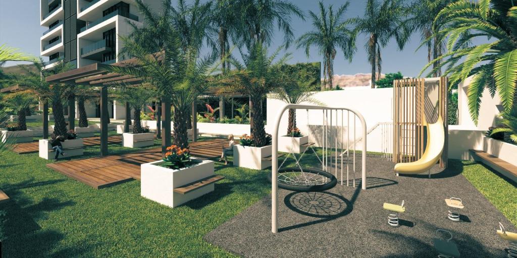 Apartamentele nou construite cu garaj și depozitare sunt situate într-o zonă rezidențială centrală a orașului, lângă spitalul IMED și la doar 10 minute de plajă. Acestea oferă 44 de locuințe noi, cu 2 dormitoare, 2 băi, living cu bucătărie utilată, cameră de spălat separată, terasă, loc de parcare și depozit. Calitatea este una bună, cu ferestre exterioare cu izolație termică și geam dublu, mobilier interior lacuit alb și dulapuri încorporate, living cu bucătărie utilată cu electrocasnice, aer condiționat cu conducte, apă caldă cu aer termal, pardoseli din gresie porțelanată, etc.