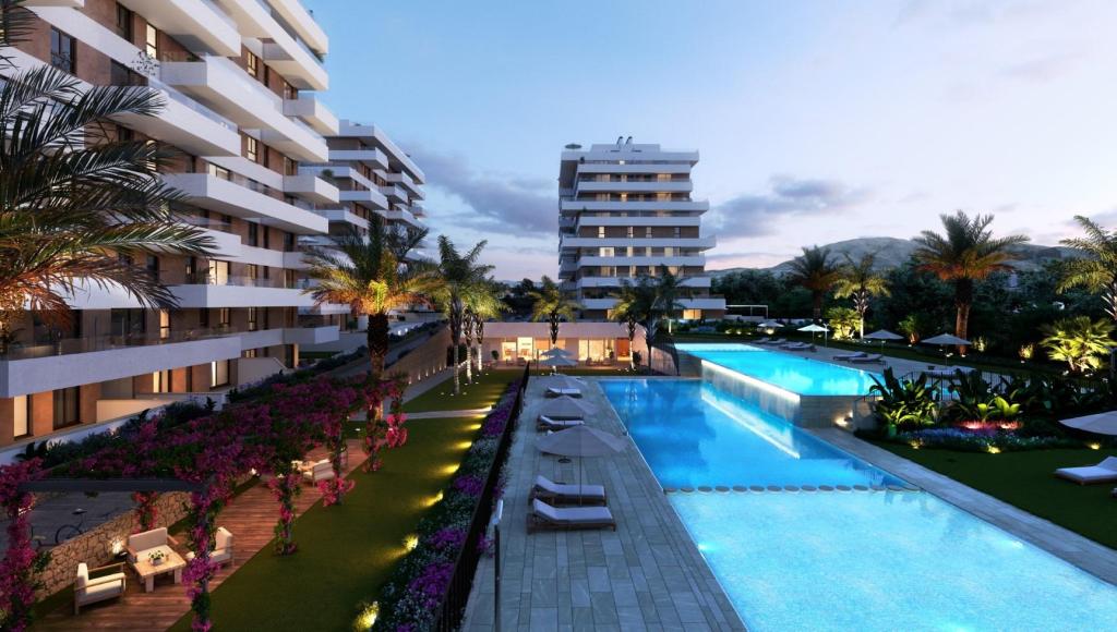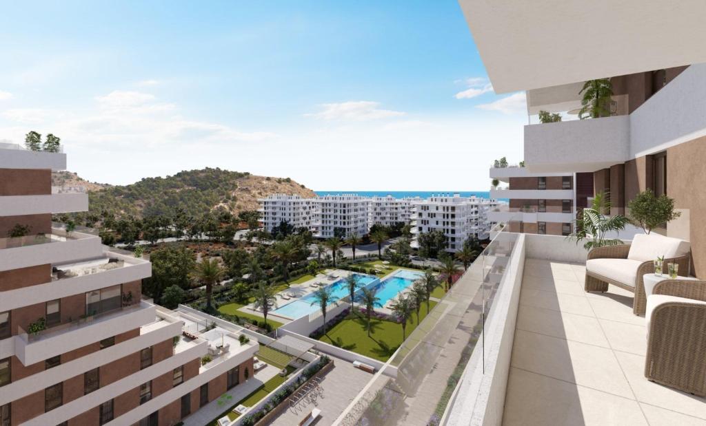 Proiect de locuinte nou construit, situat langa mare, in Playa de Torres, Villajoyosa. Apartamentul dispune de 2 sau 3 dormitoare, 2 bai, living cu bucatarie utilata, camera de spalat, terasa, loc de parcare si spatiu de depozitare. Constructia este realizata cu cele mai bune materiale: tamplarie exterioara cu rupere termica si geamuri duble, tamplarie interioara lacuita in alb, pardoseala din gresie portelanata, bucatarie utilata cu electrocasnice, aer conditionat prin conducte, apa calda prin energie aerotermica, panouri solare comunitare, usa blindata, iluminat LED, incalzire in pardoseala in bai, etc.