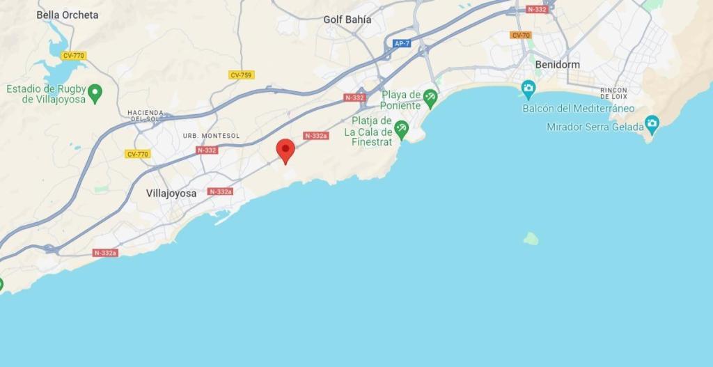 Situat in zona Torres Beach, o zona nou construita intre orasele Villajoyosa si Benidorm, foarte linistita si bine conectata cu ambele orase, aproape de toate tipurile de magazine, servicii, centre medicale, etc., si foarte aproape de autostrada A7 care face legatura cu restul Coastei Mediteraneene.