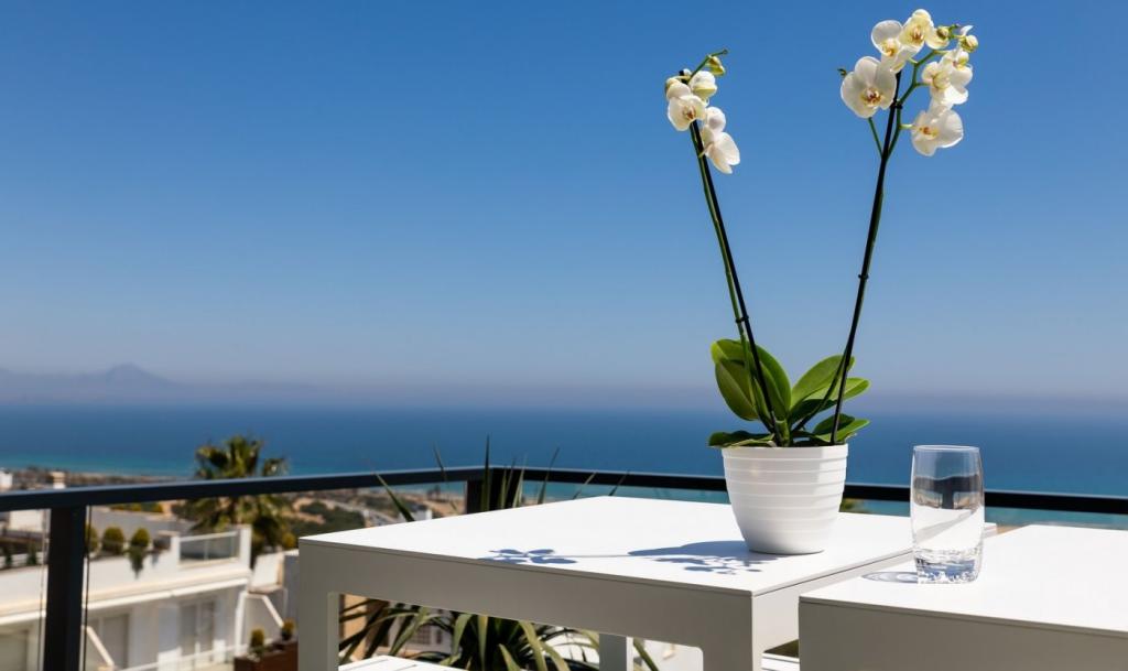 Apartamentele cu 2 și 3 dormitoare, 2 băi au o distribuție bine gândită și se bucură de o frumoasă vedere la mare, plajă și piscină, precum și la grădinile private din cadrul dezvoltării.