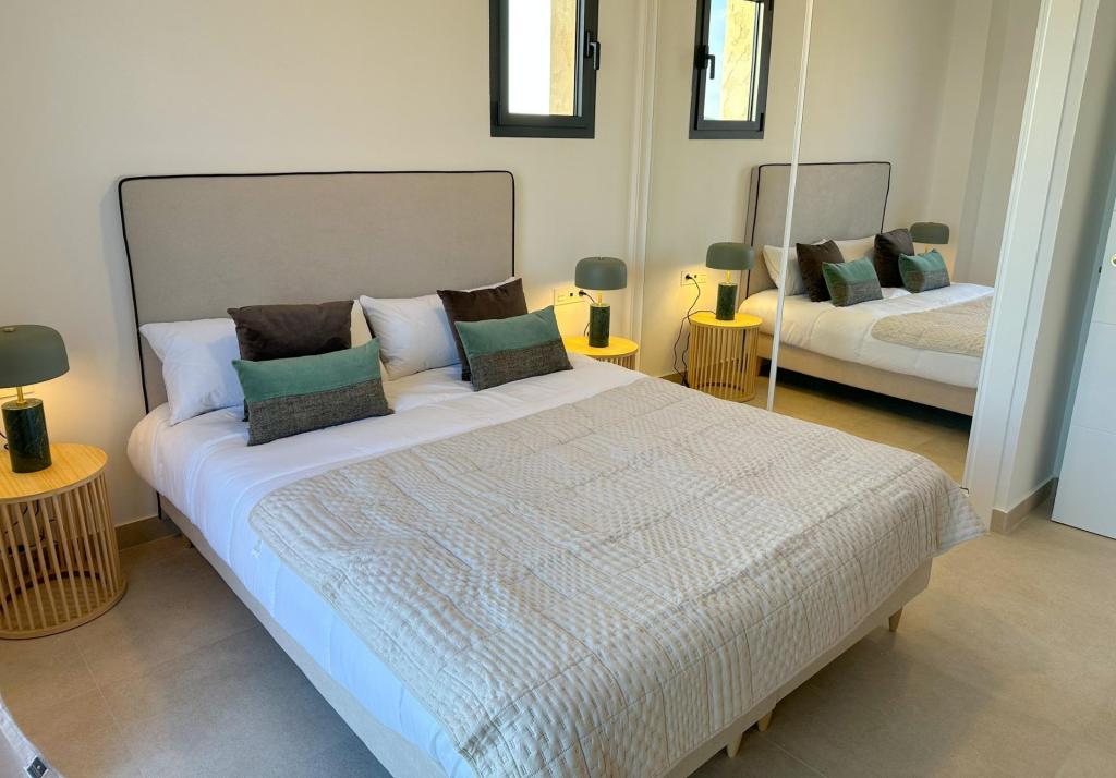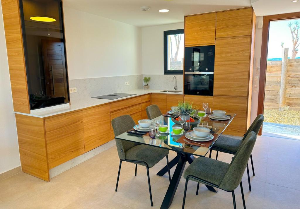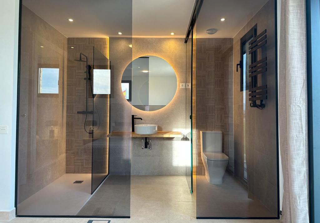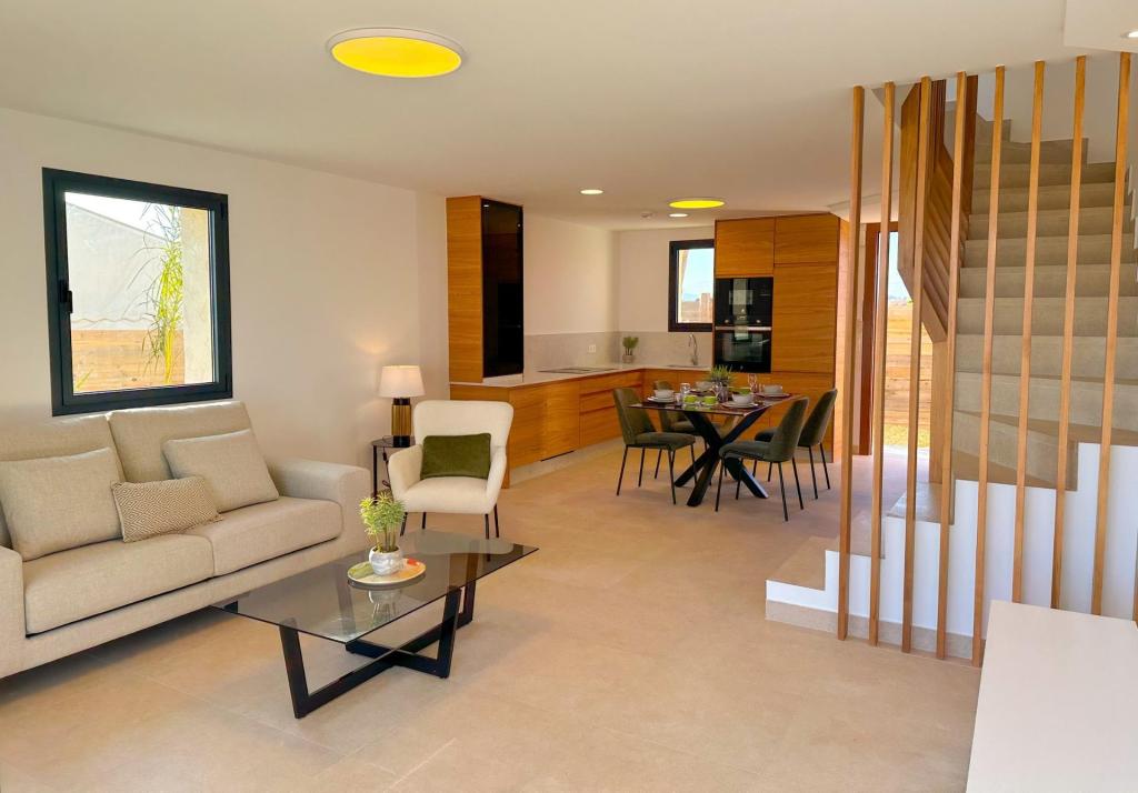 Finisajele de înaltă calitate includ: o baie și o cameră de duș cu plăci ceramice atractive. Bucătăria deschisă are blaturi din “Silestone”, cu frigiderul / congelatorul și mașina de spălat integrate în dulapuri. Plită ceramică, hotă și cuptor cu microunde. Aer condiționat, geamuri duble, dulapuri cu oglinzi în dormitoare, cu obiecte sanitare și accesorii de înaltă calitate “Roca” sau “Porcelanosa” în toată proprietatea.