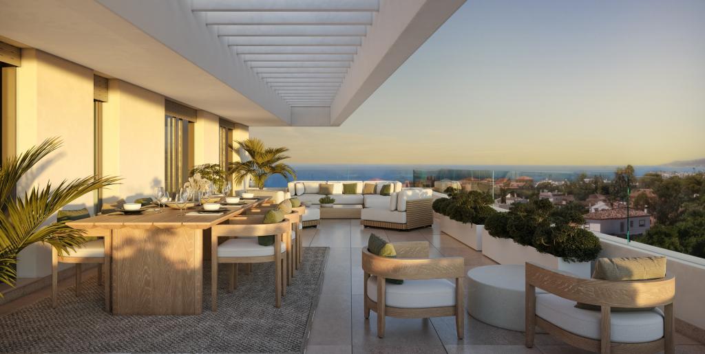 Acest penthouse de 3 camere cu o terasă de 62 mp, situat la etajul doi cu lift, face parte dintr-un nou complex de 105 apartamente cu unități de două, trei și patru camere. Amplasat pe una dintre cele mai înalte parcele din vestul Estepona, acest complex garantează vedere la mare de la 90% din unitățile sale. Apartamentele vor beneficia de eficiență energetică de clasă AA, încălzire în pardoseală, energie aerotermală, aer condiționat și toate instalațiile sanitare alese cu grijă pentru economisirea maximă a apei. Spațiile comune vor include piscine în aer liber, zone verzi magnifice, o sală de sport, o piscină interioară, precum și un club social.