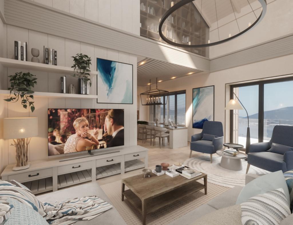 Aceast frumos și luxos penthouse duplex cu vedere la mare este situat într-un complex de marina de înaltă clasă din Tivat. Este încă în construcție și este planificat să fie finalizată la mijlocul anului 2024. Este un penthouse frontal cu o vedere la mare de 180 de grade, situată la etajele 6 și 7. Un loc de parcare în garaj este inclus în preț. Clădirea în sine are o piscină, sală de fitness, magazine, un hotel de 5 stele, spa și wellness, cinematograf. Există opțiunea de a avea o a treia cameră prin închiderea videoului loft, ceea ce ar face ca suprafața totală a apartamentului să fie de 220m2.