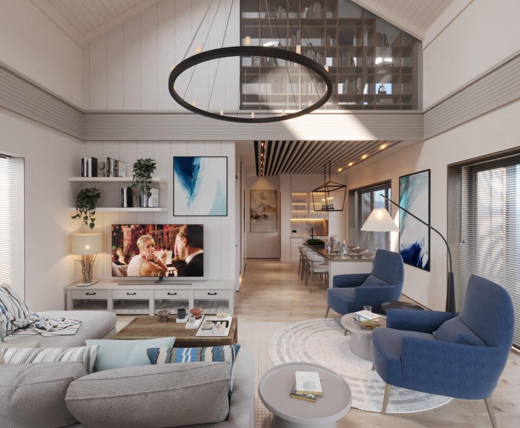 “Hamptons coastal” – mai luminos și mediteranean (ambele designuri sunt în galerie)