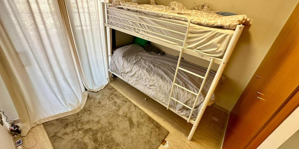 – Un dormitor dublu cu dulapuri încorporate și acces la balcon.