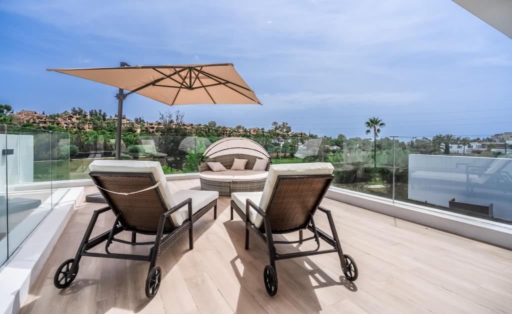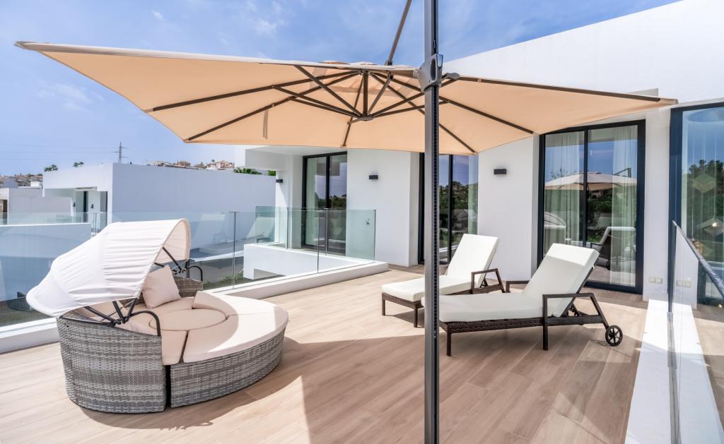 Această vila luxoasă cu 5 dormitoare și 4.5 băi este situată pe terenul de golf El Campanario din Marbella și oferă o combinație perfectă între eleganță și confortul de ultimă generație pe o suprafață de 460 de metri pătrați. Designul deschis al vilei permite luminii naturale să pătrundă în fiecare cameră, oferind o priveliște impresionantă asupra terenului de golf și a împrejurimilor. Proprietatea oferă intimitate și siguranță, fiind dotată cu sisteme de supraveghere, alarme și senzori de mișcare pentru a vă asigura liniștea.