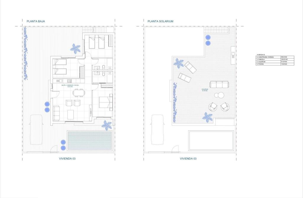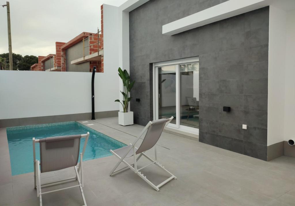 Vila nou construită are 6 vile individuale cu un nivel, cu o zonă terasată, piscină privată, parcare pe teren și solar cu bucătărie de vară, pentru a vă bucura de toate orele de soare în fiecare zi a anului.