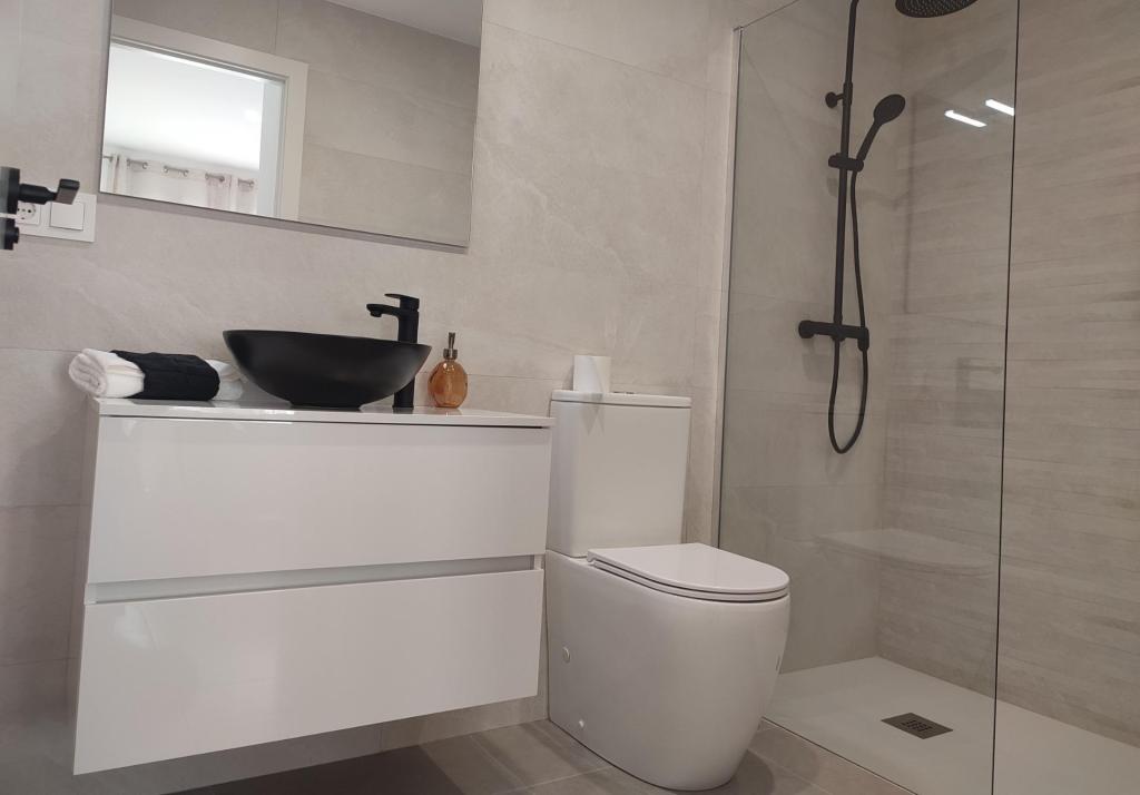 – Băi complet echipate cu toaletă, unitate de toaletă, oglindă și duș cu panouri de sticlă.