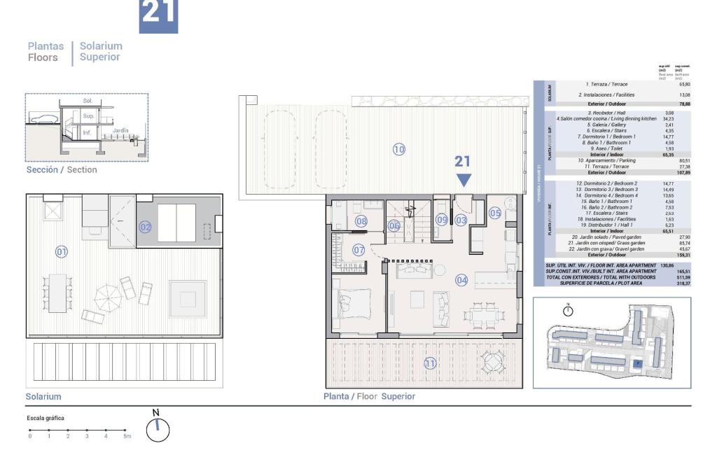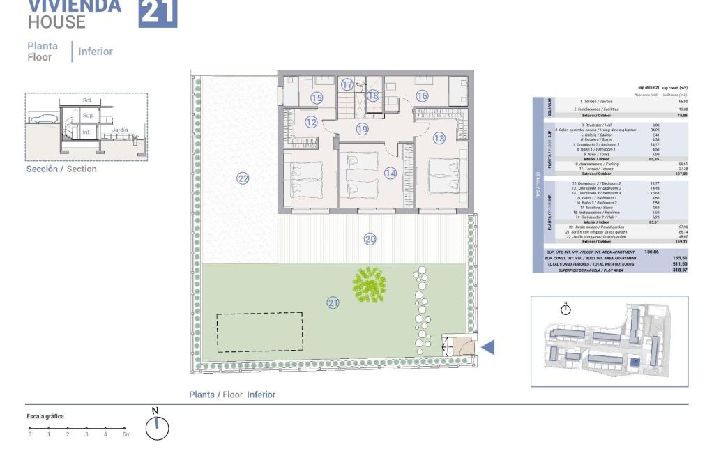Proprietatile sunt construite pe 3 etaje, au 4 dormitoare, 3 bai, toaleta pentru oaspeti, bucatarie deschisa cu zona de lounge, dulapuri incorporate, mai multe terase cu vedere, parcare pentru doua vehicule si gradina cu acces direct la zonele comune. Multe dintre ele au si un solarium unde va puteti bucura de serile in aer liber cu prietenii.