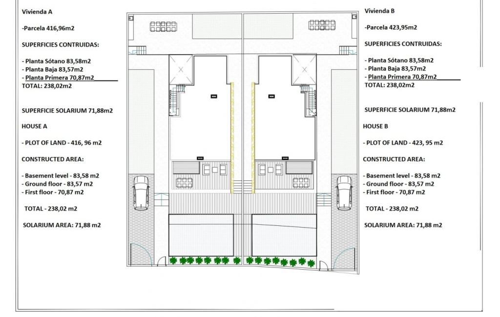 2 VILE NOI DE CONSTRUIT IN TORREVIEJA 2 Vile frumoase noi in Torrevieja. Vilele au 4 dormitoare, 4 bai, bucatarie deschisa cu zona de lounge, dulapuri incorporate, gradina privata cu piscina si loc de parcare in afara strazii, solarium privat si subsol. Vilele sunt situate la 15 minute de mers pe jos de faimoasa Playa de La Mata (5 minute cu masina). Torrevieja este un oras spaniol din provincia Alicante, pe Costa Blanca. Este cunoscut pentru clima sa tipic mediteraneana si coasta sa. Are promenade cu statiuni de-a lungul plajelor sale nisipoase. Micul Muzeu al Marii si Sarii gazduieste expozitii despre istoria pescuitului si a sarii a orasului. In interior, Parcul Natural Lagunas de La Mata-Torrevieja are trasee si doua lagune sarate, una roz si cealalta verde. Aeroportul Alicante se afla la 40 de minute distanta, iar aeroportul Murcia la aproximativ 1 ora.