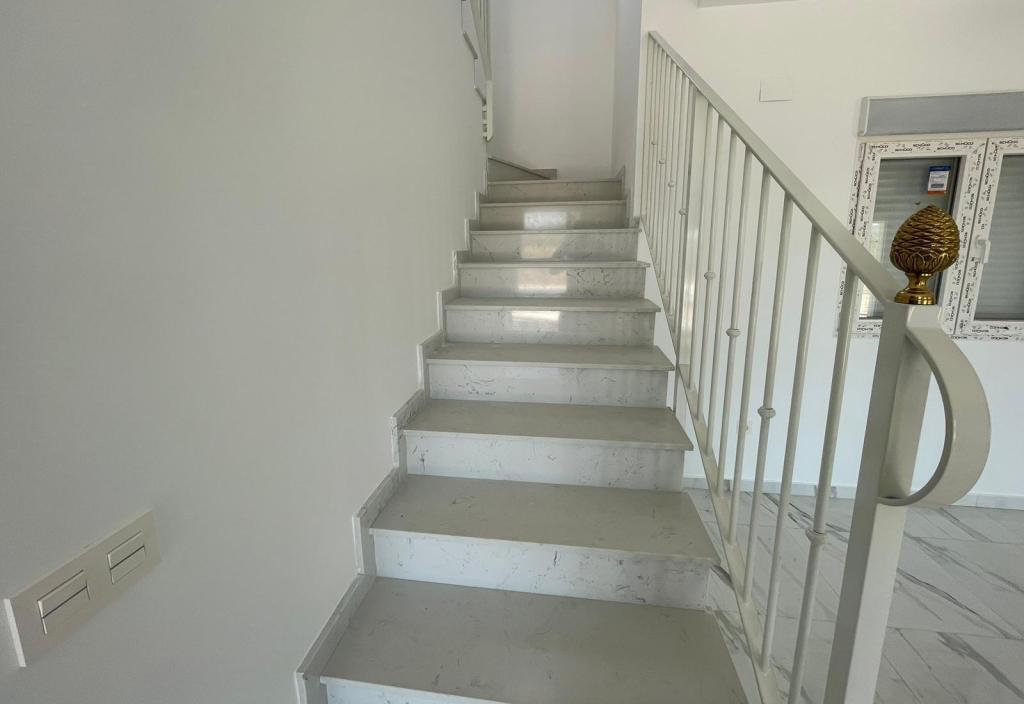 Scara de marmura (crem, alb sau gri) si balustrade incluse, plus balustrade pentru terasa din fata.
