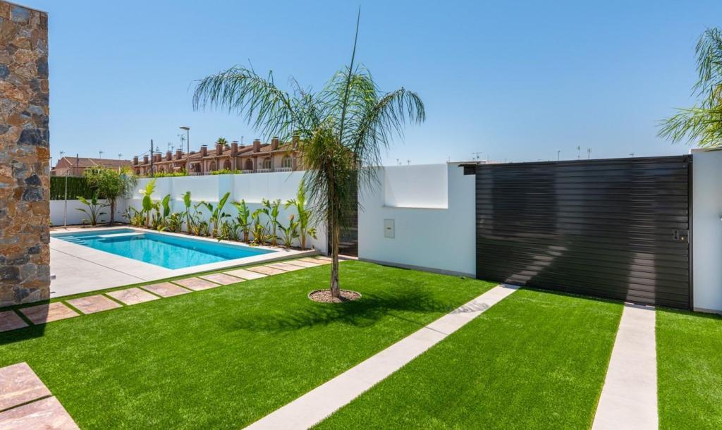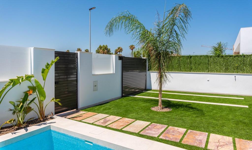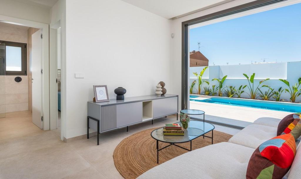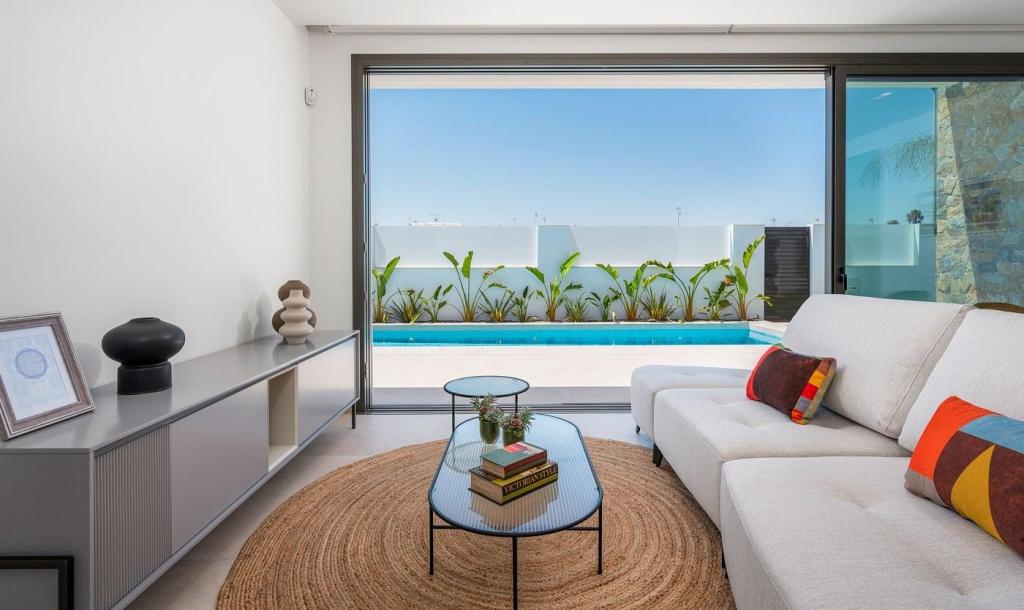 Acesta este un nou proiect rezidential de vile in San Javier. Vilele sunt construite pe un singur nivel si au 3 dormitoare, 2 bai, bucatarie deschisa, living cu vedere la terasa, gradina privata cu piscina. Bucataria este complet mobilata in culori albe lucioase sau lemn si include plita cu inductie si hota integrata, cuptor, cuptor cu microunde, masina de spalat, frigider integrat si masina de spalat vase integrata. Instalatia de aer conditionat este completa prin conducte. Piscina are pre-instalare pentru pompa de caldura.